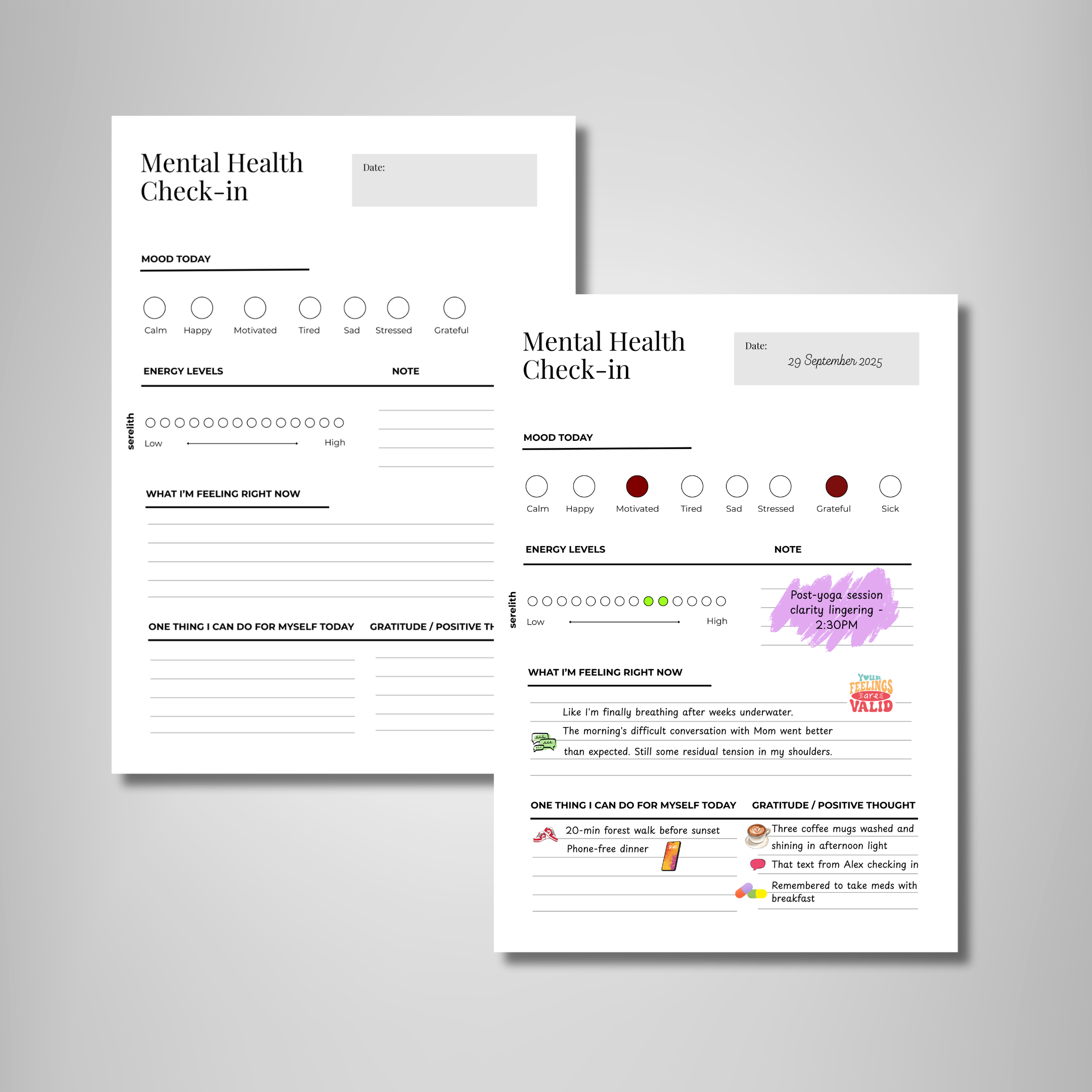 This printable insert is designed to help you check in with yourself, track your emotions, and cultivate healthier mental habits every single day.