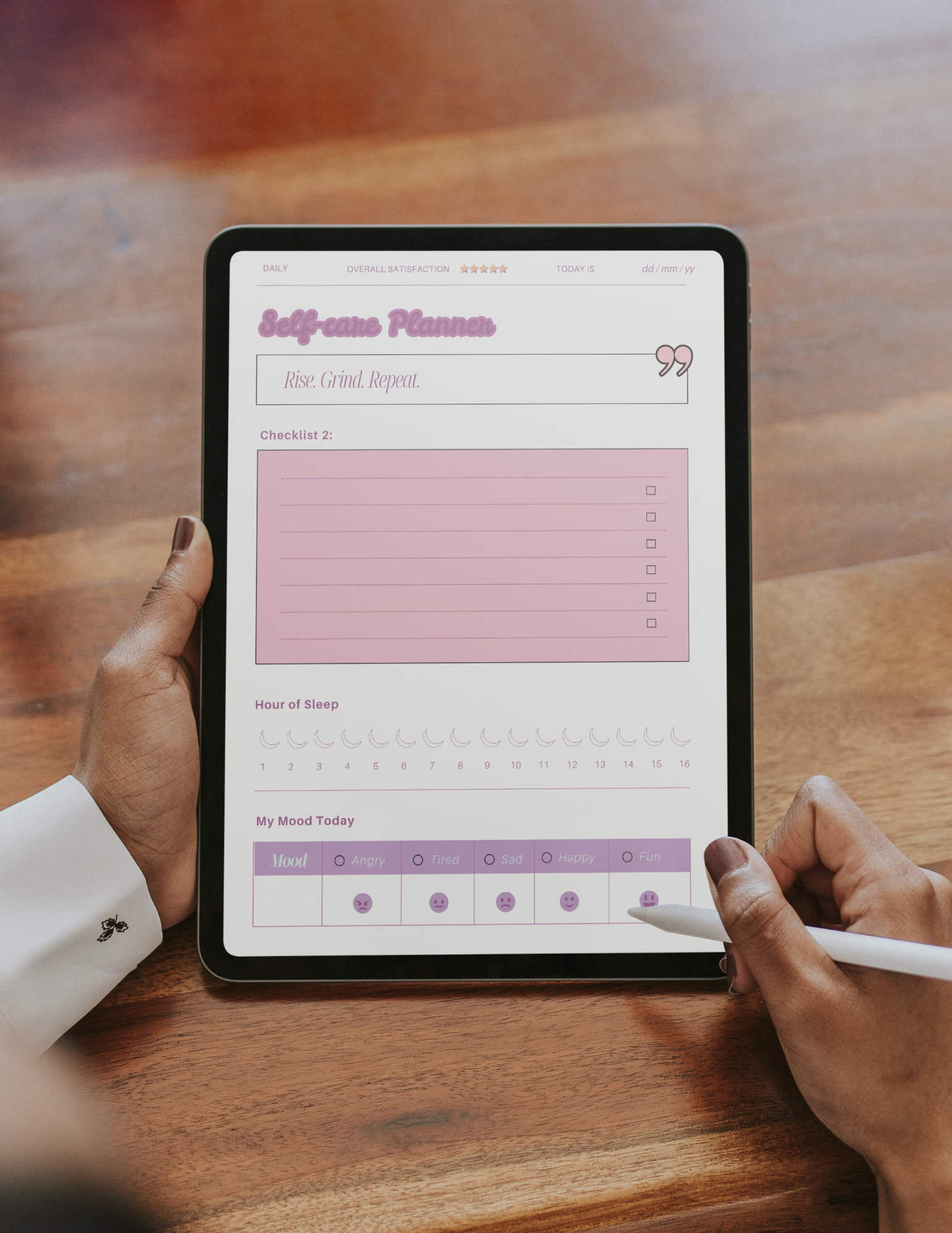 - Daily Satisfaction: A dedicated space to rate your overall satisfaction for the day.