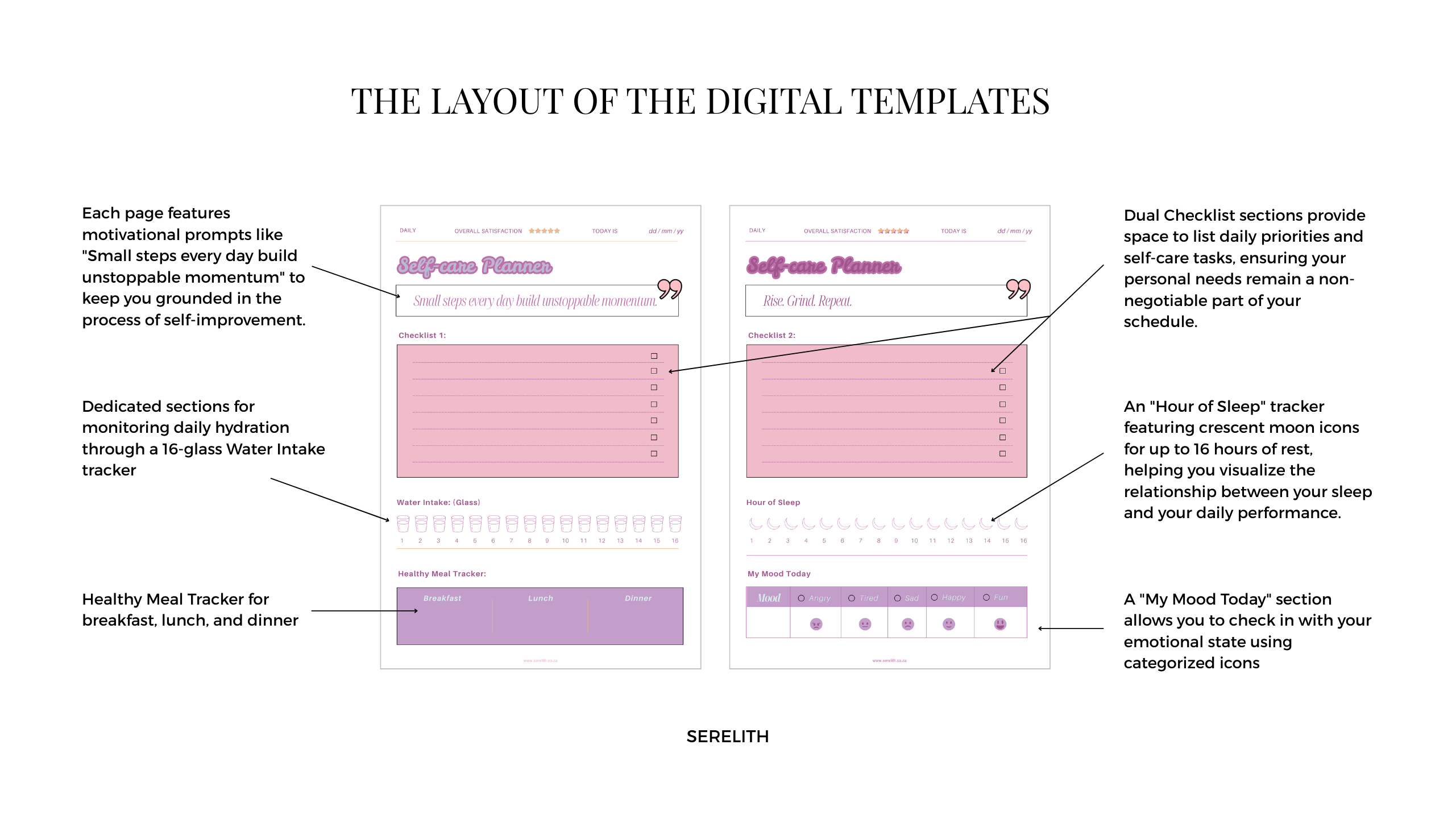 - Strategic Prompts: Each page includes the motivational anchor: “Rise. Grind. Repeat.”.