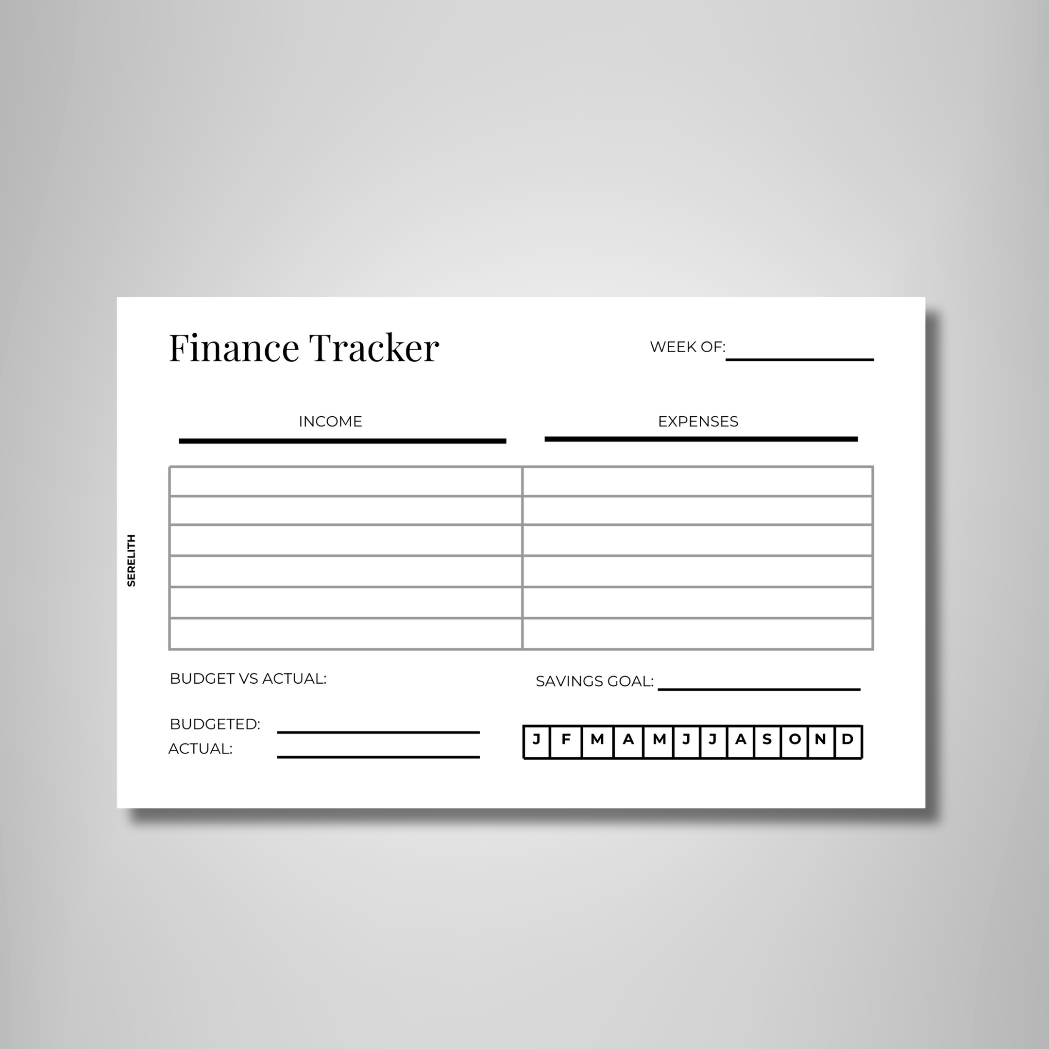 Keep your finances organized with our Weekly Finance Tracker Planner Card. A simple yet effective way to manage money and track progress toward savings.